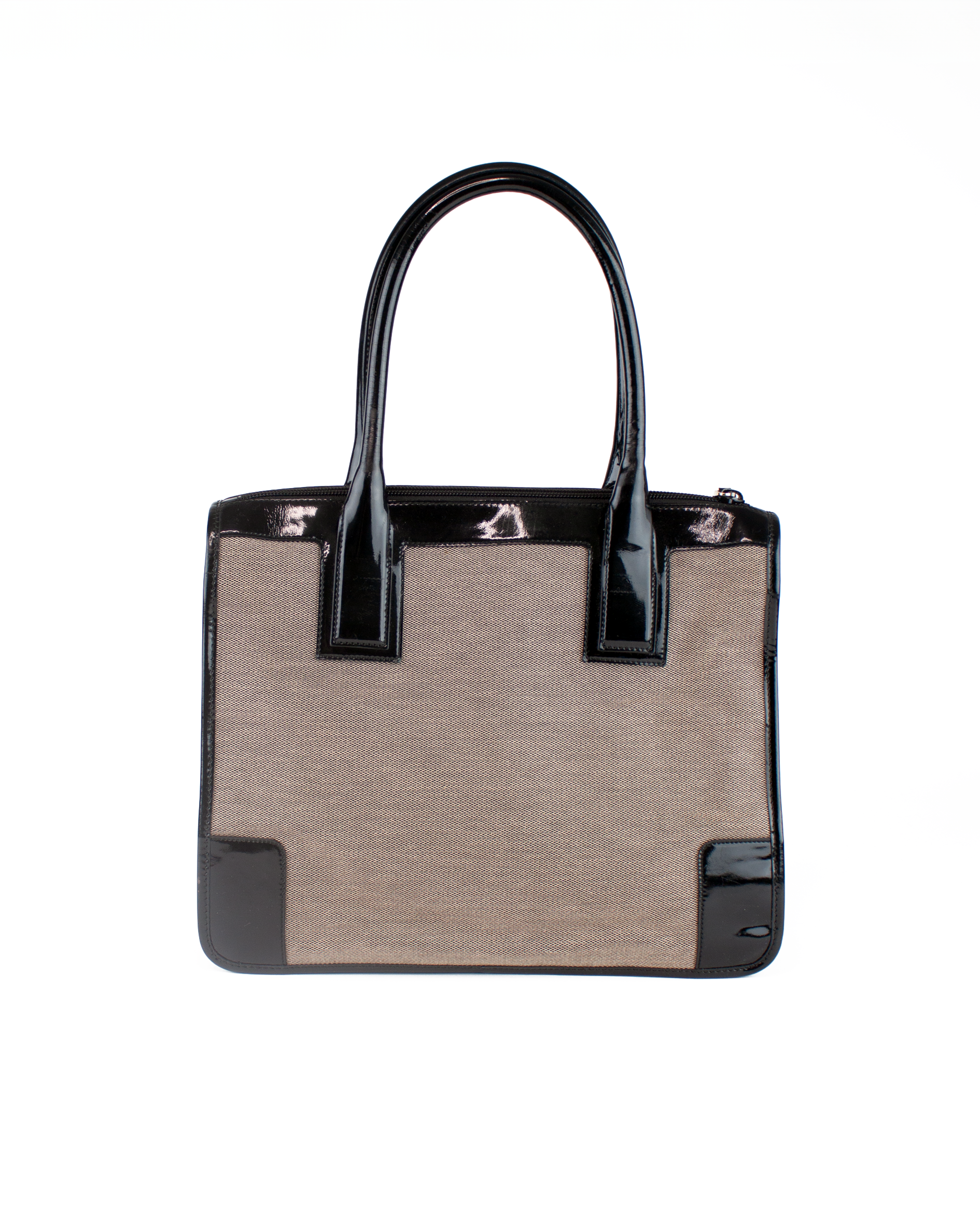 Patent Trimmed Canvas Shoulder Bag