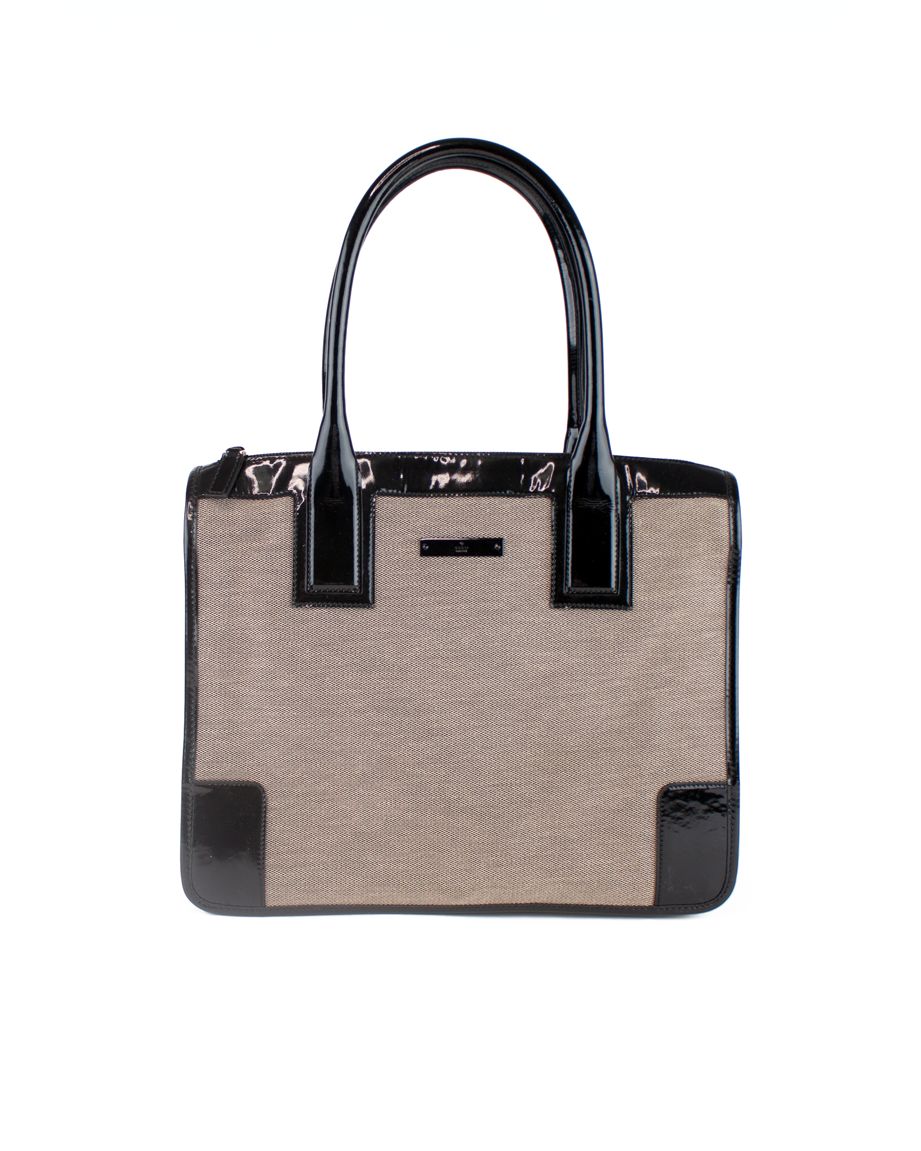 Description: Gucci Patent Trimmed Canvas Shoulder Bag